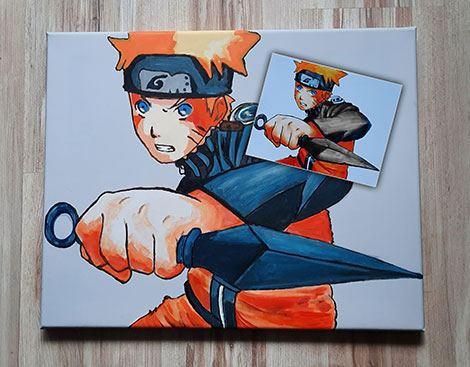 Auf diesem Bild erkennst du das vollendete Kunstwerk im Vergleich zur Vorlage.